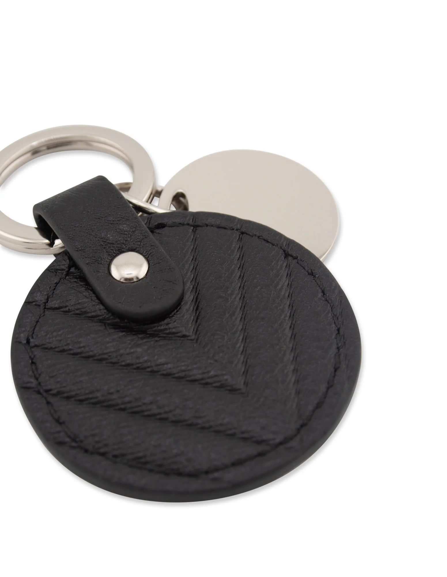 Give your keys a sophisticated touch with our Chevron Circle Leather Key Ring. Comes in Black and Nude.