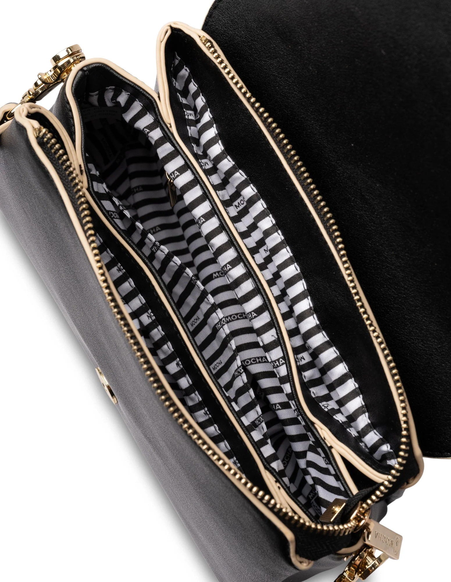 Mocha Daisy Top Handle Crossbody Bag - Black